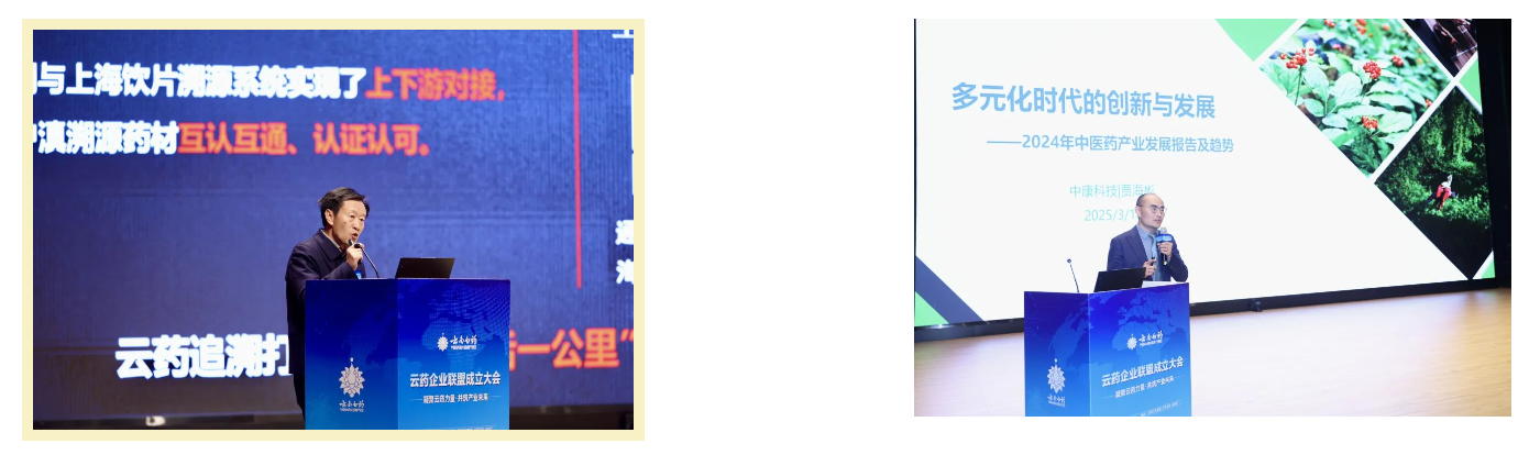 专题报告环节,多名专家围绕云南中药材产业高质量发展出谋划策。云南省中药产业协会会长苏豹作《云药追溯助力中药材产业高质量发展》专题报告;中康控股中康云瓴科技公司总经理、中康科技中药产业大数据中心首席分析师贾海彬作《全国中药产业现状分析及发展预测》专题报告。面对中药材产业标准化程度不足、质量追溯体系薄弱等共性难题,以“产业规划+数字基建”双轮驱动,开辟高质量发展新路径。二者的有机融合,不仅助力云南建成覆盖种植、加工、流通的标准化体系,更以可信溯源数据重塑“云药”品牌价值。